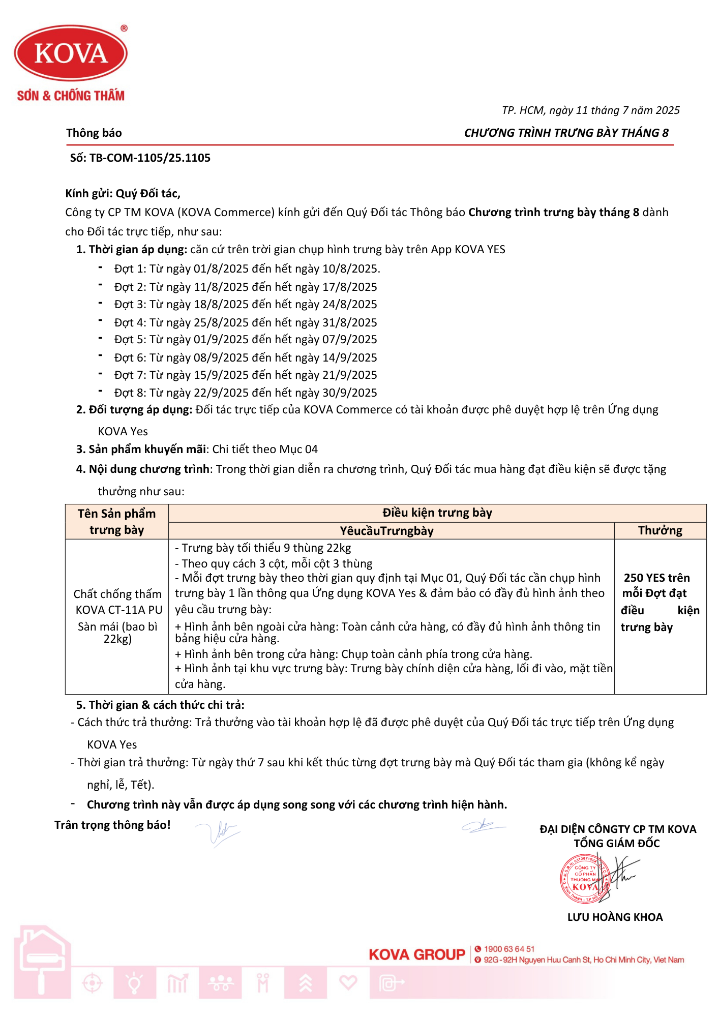 CHƯƠNG TRÌNH TRƯNG BÀY THÁNG 8
