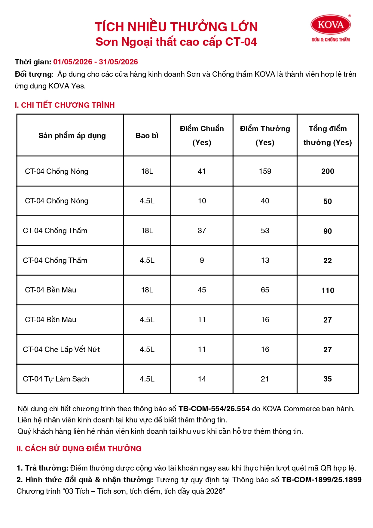 [Tháng 5] Tích nhiều thưởng lớn - Sơn Ngoại Thất Cao Cấp KOVA CT-04