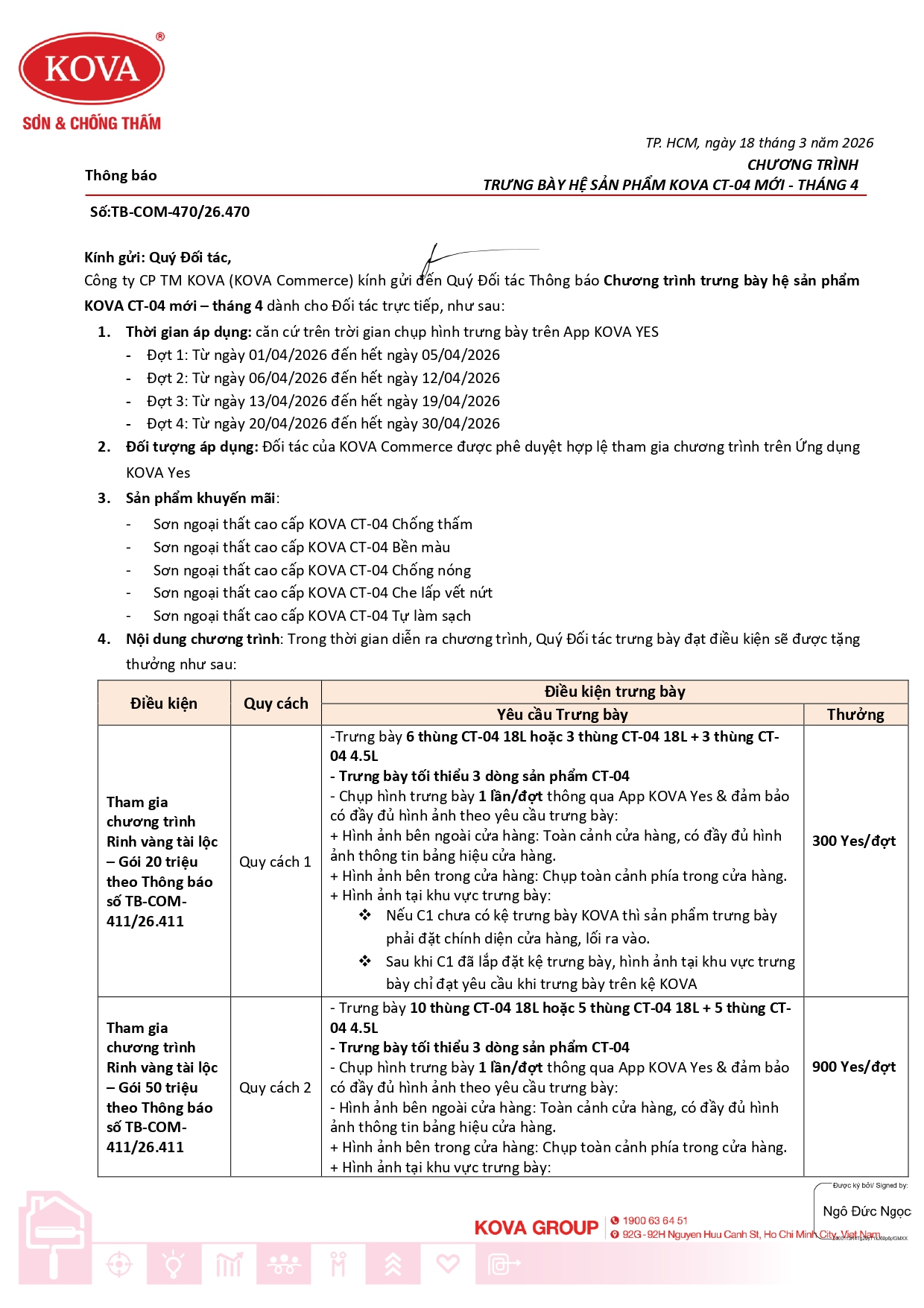 CHƯƠNG TRÌNH TRƯNG BÀY HỆ SẢN PHẨM KOVA CT-04 MỚI - THÁNG 4/2026
